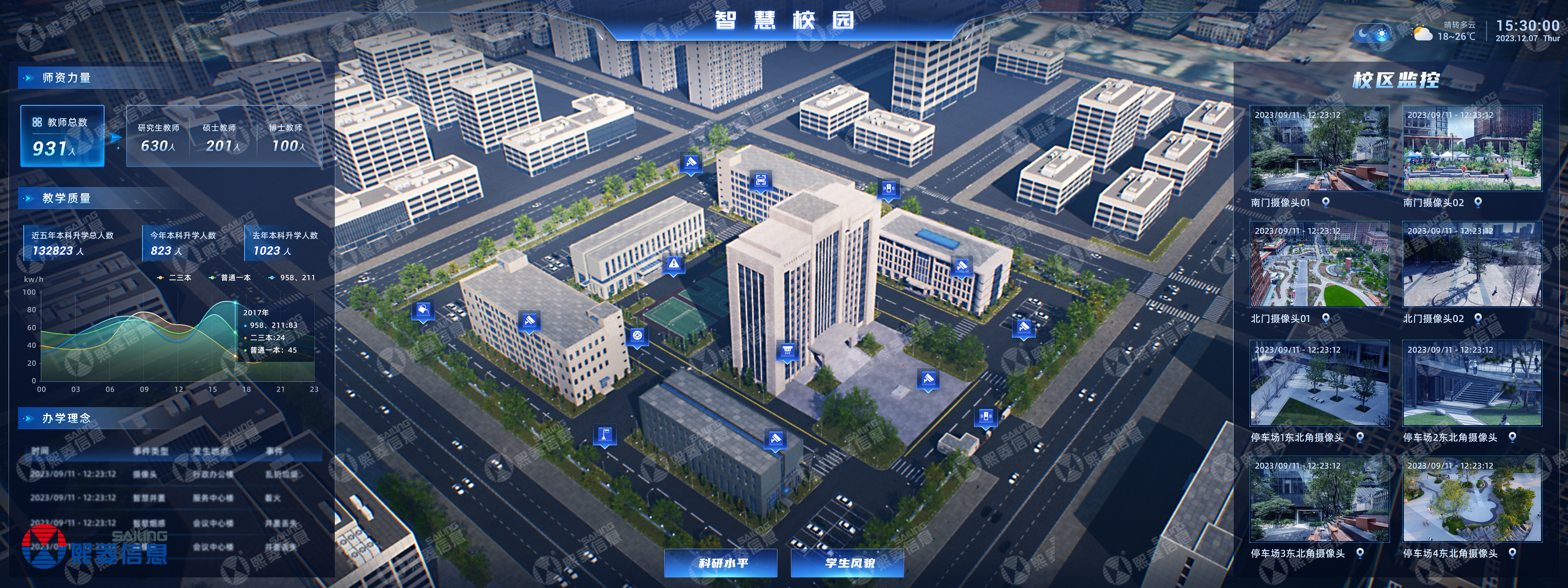 四是孪生呈现。支持大屏端、电脑端、移动端等多端联动、数字孪生呈现,一屏“智理”校园将不再是难题。